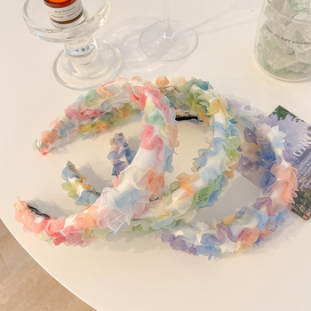Kore Ins kadın kızlar yaz tatlı saç bandı saç aksesuarları zarif renkli organze kafa bandı